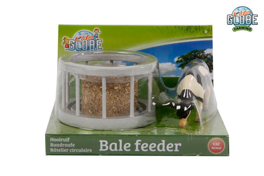 KIDS GLOBE FEEDER RING WITH ROUND BALE AND COW 1:32